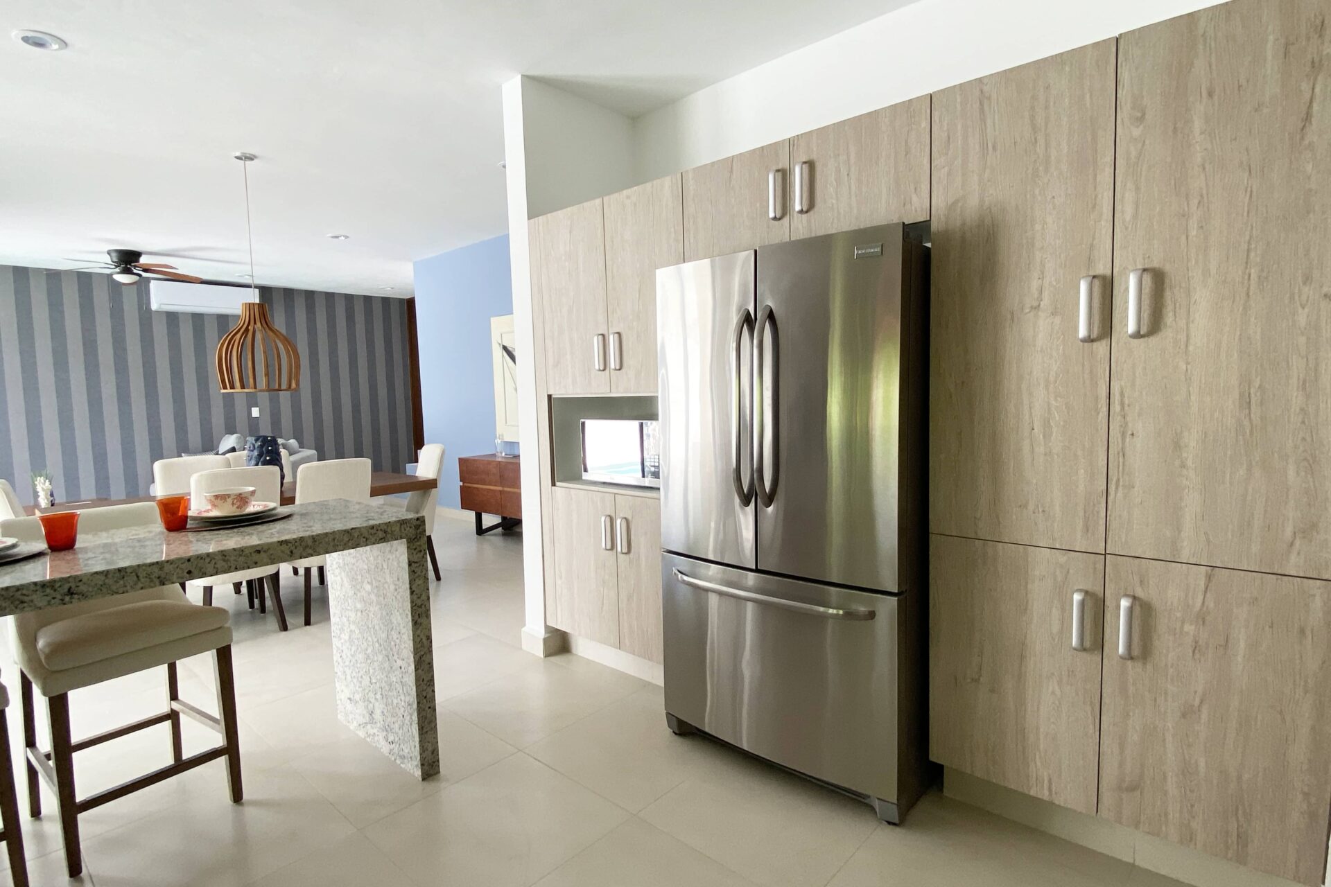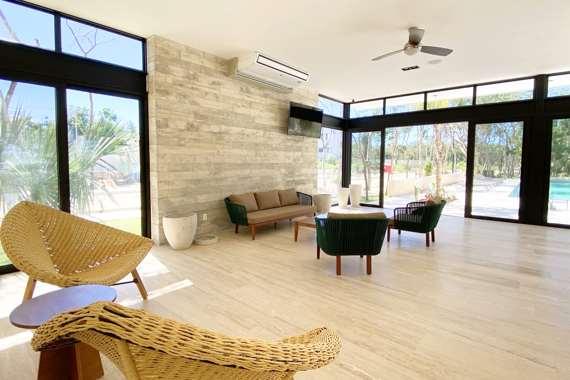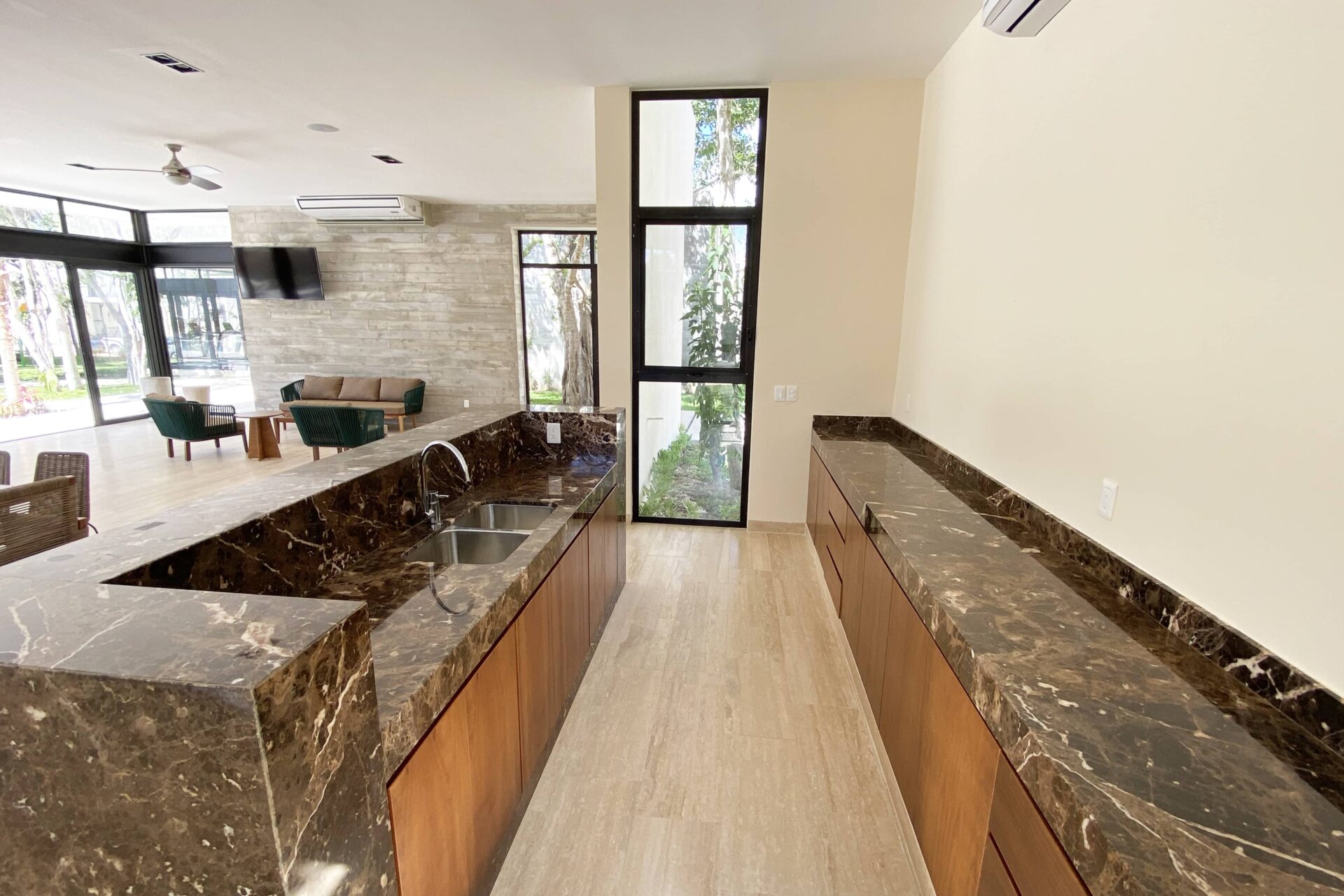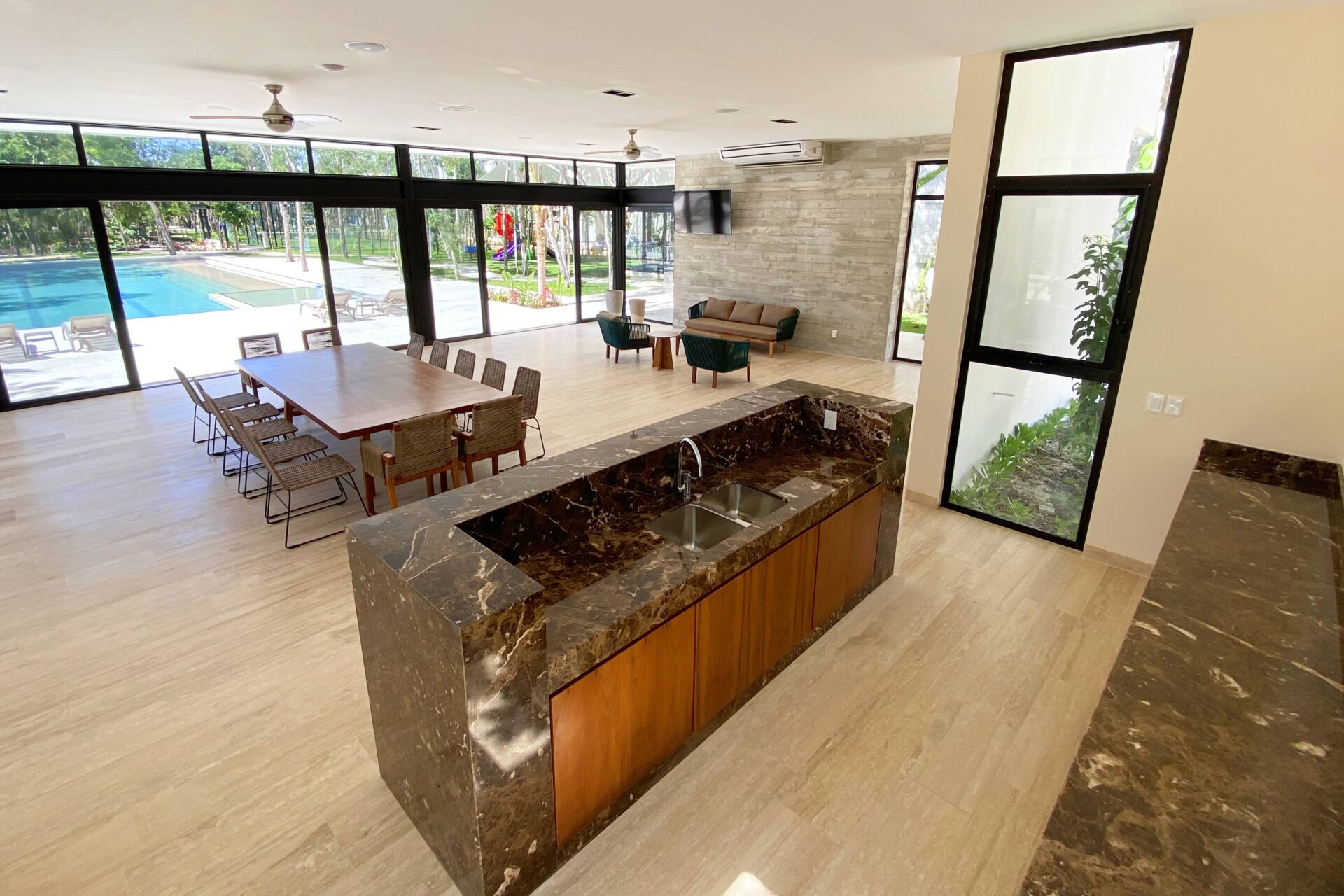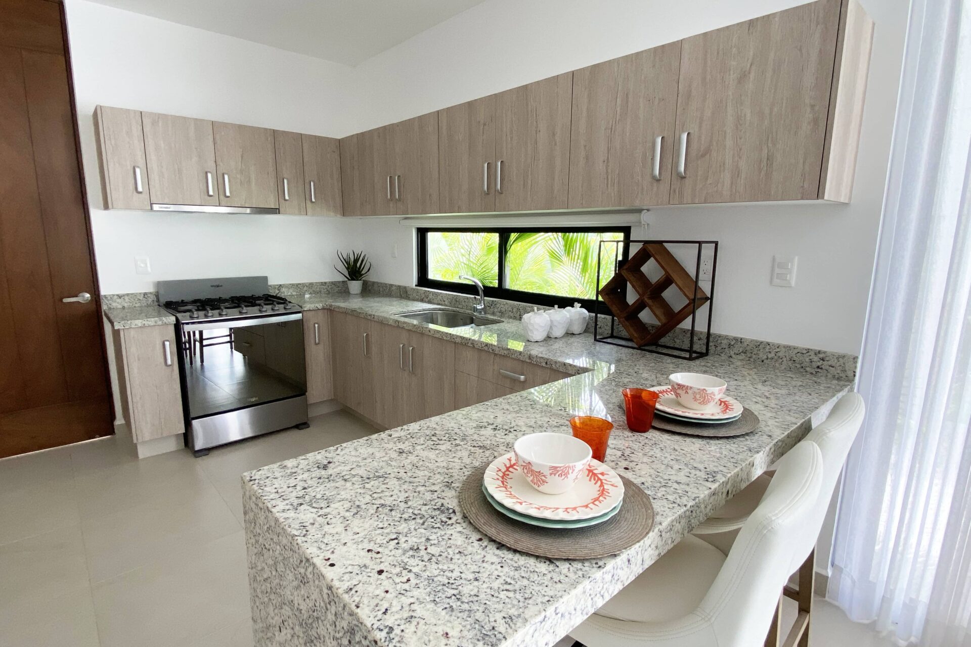 Esta casa de lujo destaca por su sólida construcción y materiales de alta calidad. La estructura está construida sobre cimientos de hormigón armado con mampostería de piedra regional, muros de block de hormigón y vigas y columnas reforzadas, diseñadas para una mayor durabilidad en el clima de la Riviera Maya. Los acabados interiores incluyen pisos cerámicos de gran formato en salas de estar y terrazas, revestimientos de mármol travertino en baños y encimeras de cocina de granito blanco, combinadas con un sistema de cocina modular prefabricado. Los detalles en piedra natural realzan la fachada, mientras que las paredes y techos interiores presentan acabados lisos y pintura vinílica de primera calidad.