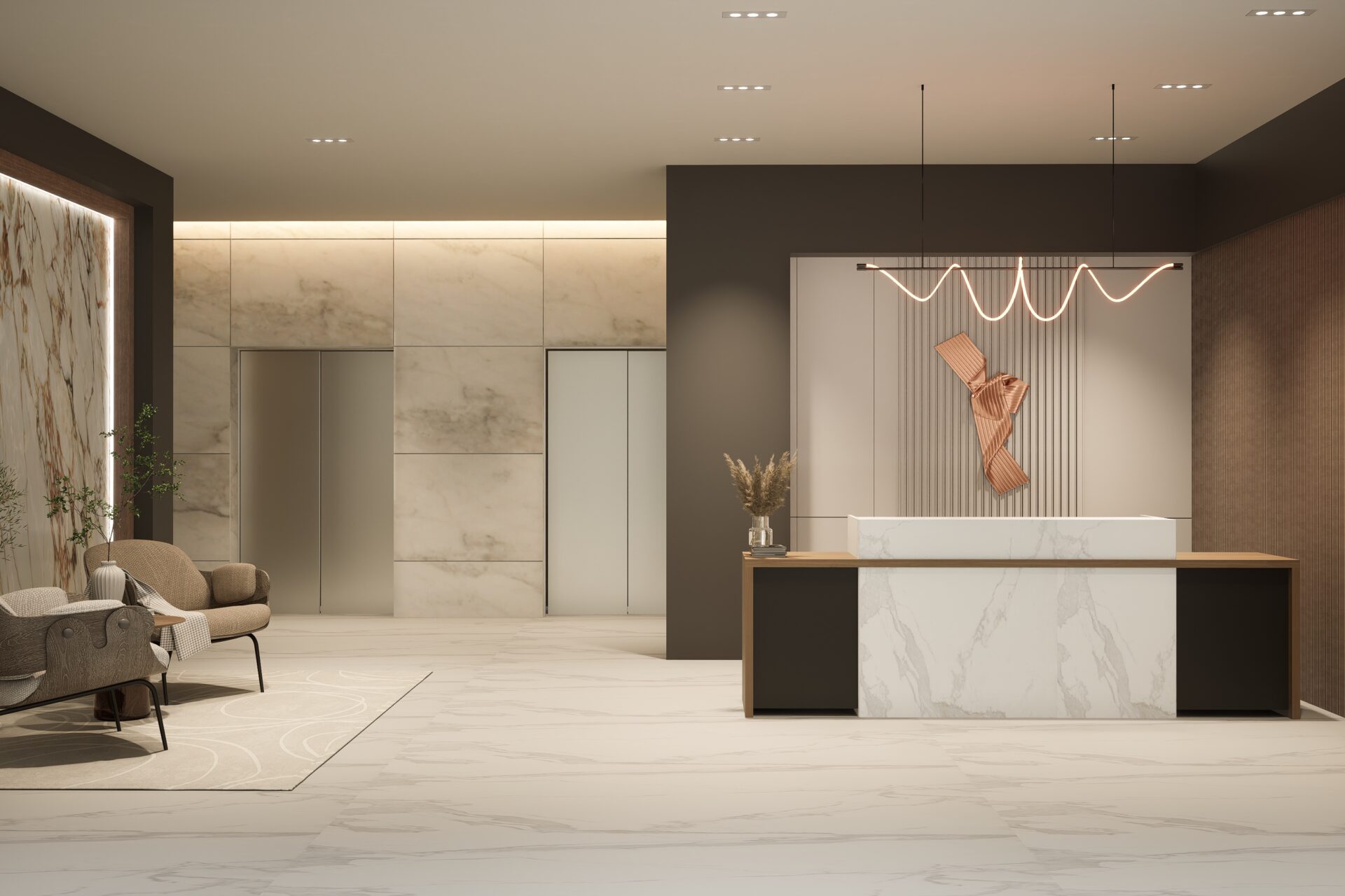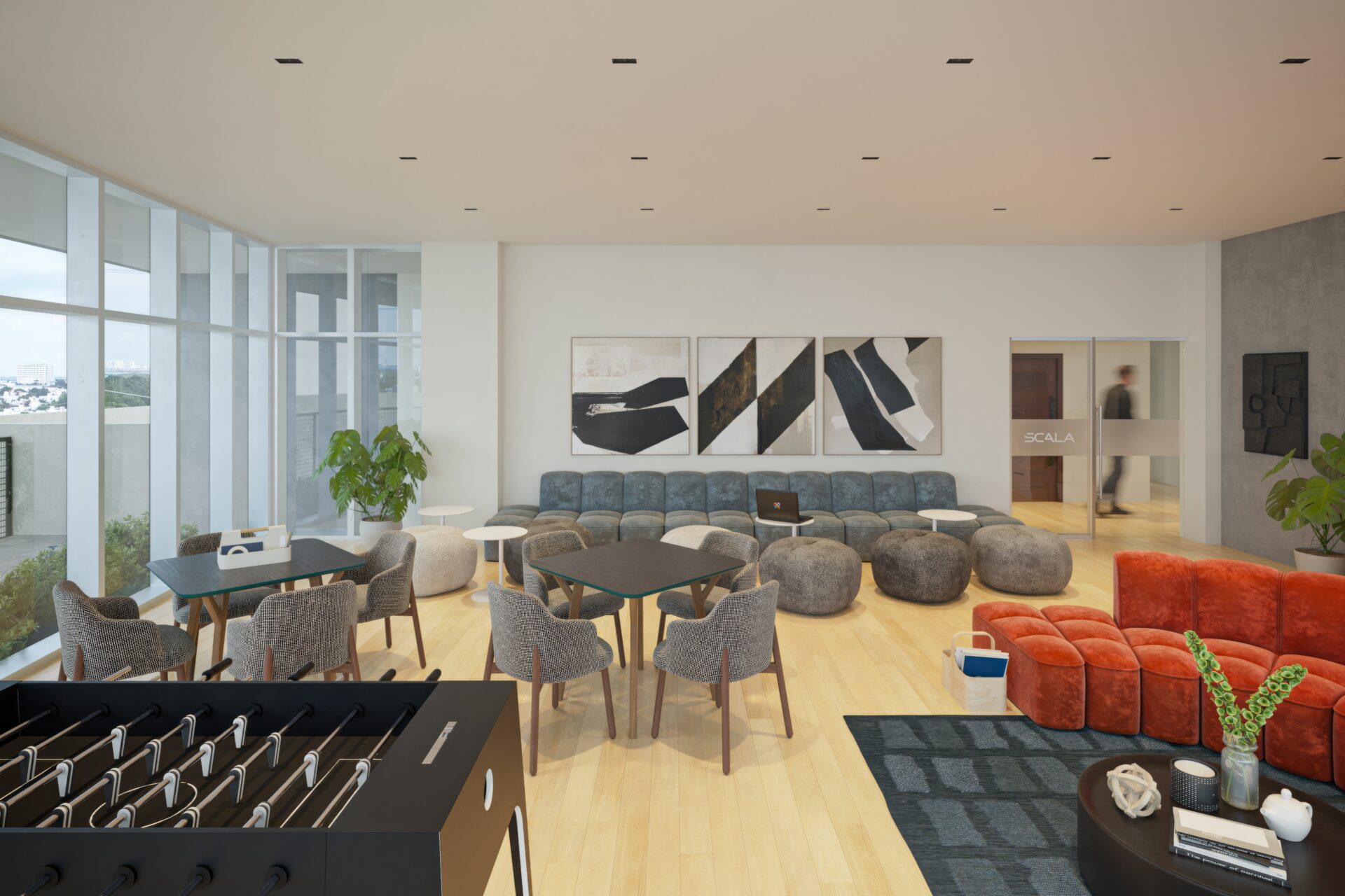 Architectural features include a hurricane-resistant façade, preparation for air conditioning and private restrooms, as well as two high-speed elevators and an additional elevator dedicated to the commercial area. Every element has been carefully planned to deliver efficiency, safety, and long-term value.