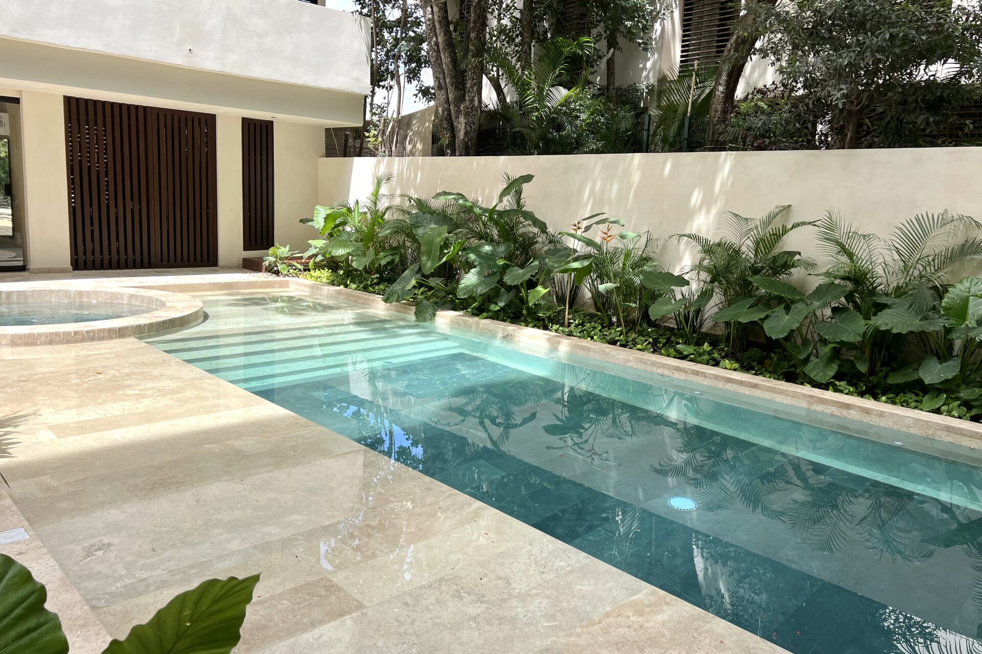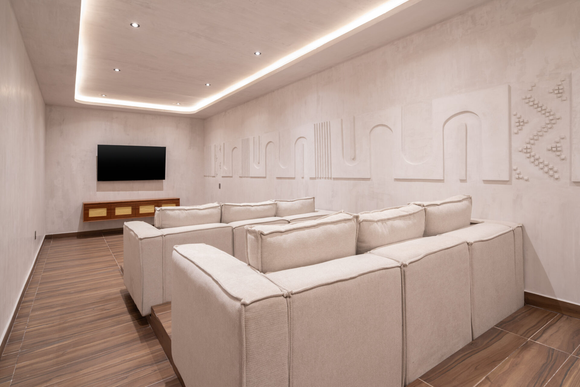 Las amenidades del proyecto complementan una vida de lujo relajado. En el rooftop, una alberca panorámica se convierte en el escenario perfecto para disfrutar atardeceres caribeños, mientras que el jacuzzi, el cine al aire libre y el solarium crean ambientes diseñados para el bienestar y la tranquilidad. La alberca con carril de nado agrega un toque deportivo, y el gimnasio completamente equipado permite mantener un estilo de vida saludable.