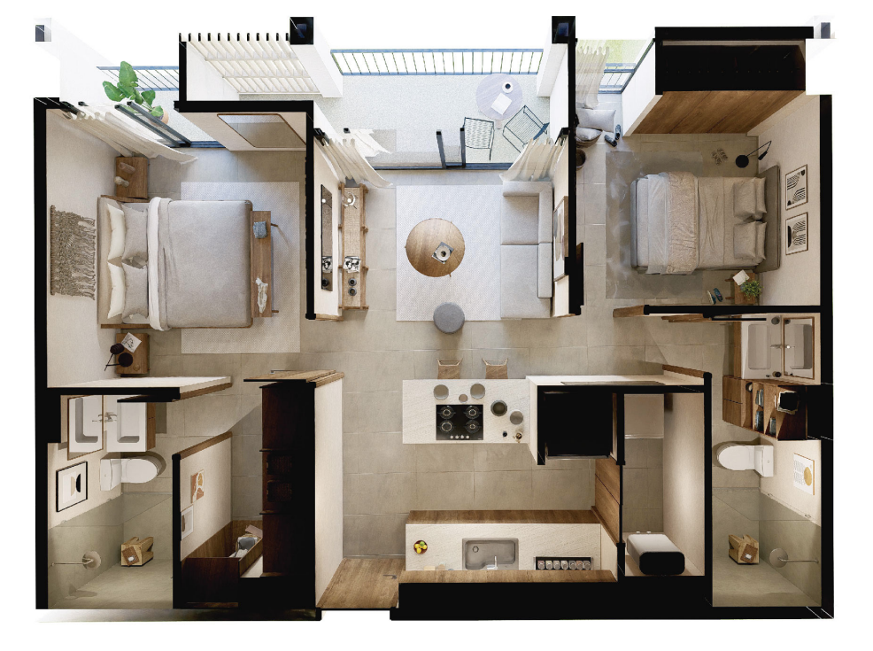 With a total area of 75 m², this residence features a spacious and functional layout filled with natural light. It includes a comfortable living room, modern kitchen, two bedrooms, two full bathrooms, laundry area, and a private terrace—the perfect place to enjoy the Caribbean breeze and the serenity of your surroundings. Every detail has been carefully considered to provide a home that balances beauty, practicality, and well-being.