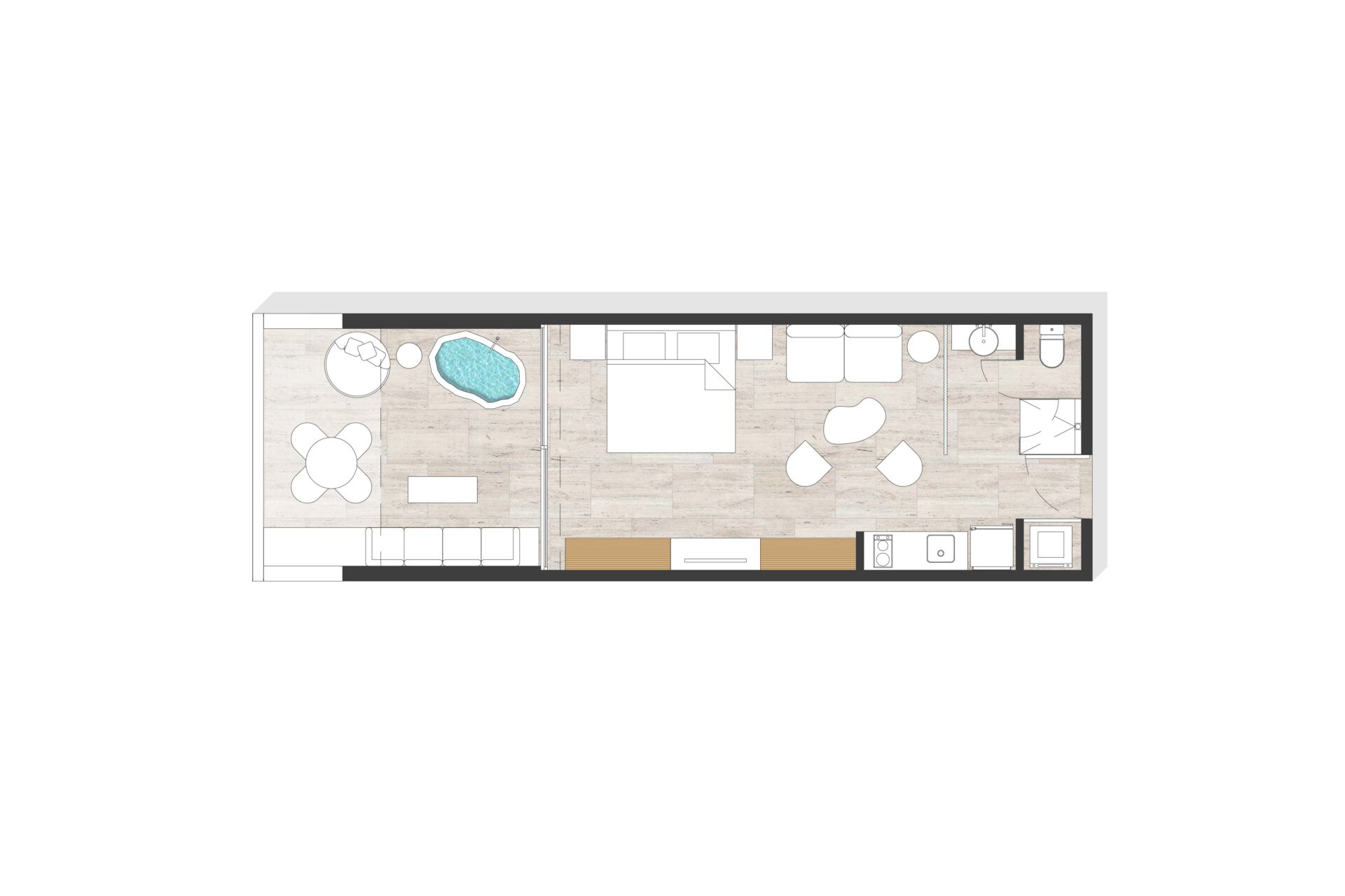 Este estudio de 45 m² ha sido concebido para quienes buscan un refugio elegante junto al mar, combinando diseño inteligente, eficiencia y un estilo de vida de alto nivel. El espacio integra cocina, sala, un baño completo y una terraza privada con tina exterior, creando un ambiente perfecto para relajarse, invertir o disfrutar de una escapada sin preocupaciones.