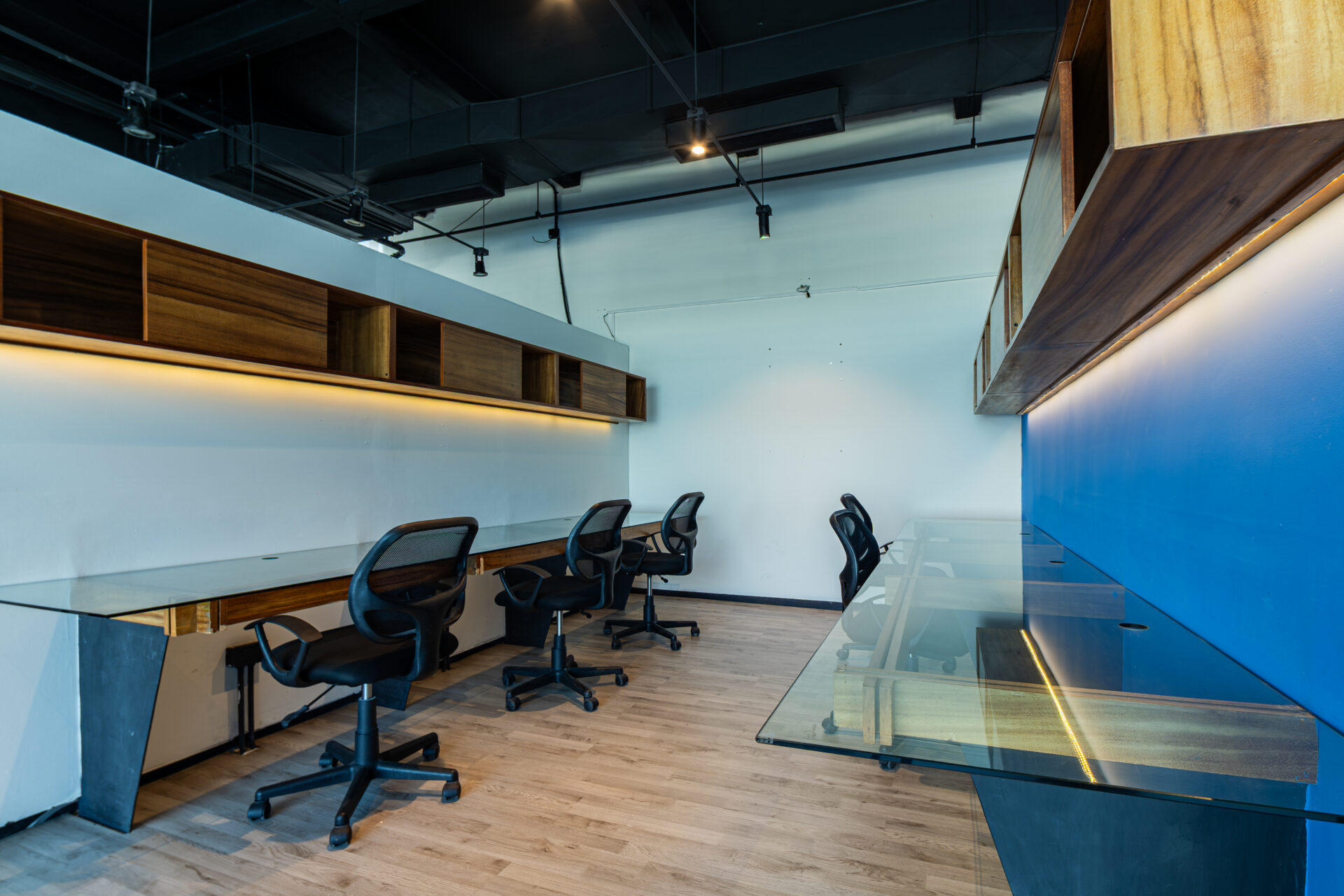 The office is situated on a high floor of the building, offering privacy and a prestigious corporate image. It comes fully equipped with drywall partitions, two private offices, a meeting room for six people, a reception area, a coffee bar with sink, built-in Tzalam wood furniture, tempered glass desks, storage units, decorative lighting, and a complete electrical system. It also features two central air conditioning units, security cameras, and thoughtfully designed spaces that maximize productivity, with no additional investment required.
