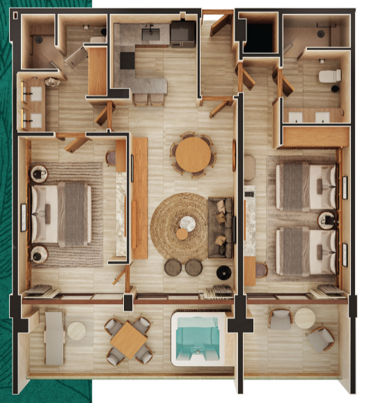 Set along the stunning shores of the Caribbean Sea, this oceanfront penthouse elevates coastal living to a world-class standard. With panoramic water views, expansive terraces, a private plunge pool, and a sophisticated lock-off system, the residence accommodates up to eight guests in complete comfort and privacy. Its two bedrooms, open-concept social areas, and contemporary design create an atmosphere where elegance and tranquility coexist effortlessly.